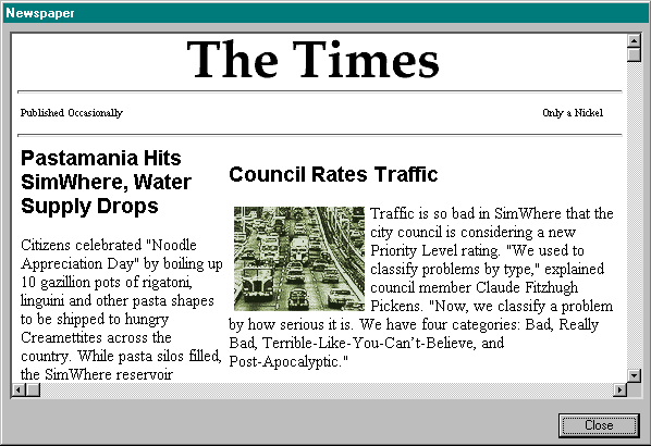 about) every window, button, feature and function of the SimCity 2000 Network