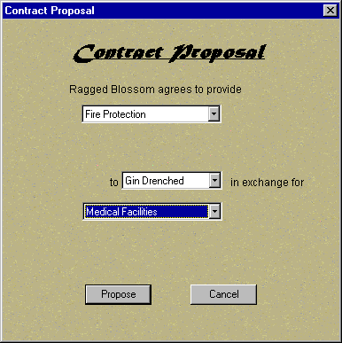 These commands let you arrange agreements on the sharing of certain resources (power, police protection, etc.) between players in the game. Information about the use of contracts can be found on the Player Contracts page.