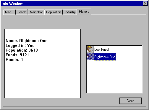 The Players tab lets you see icons for all of the current players that when clicked will display statistical info about that player and their district.